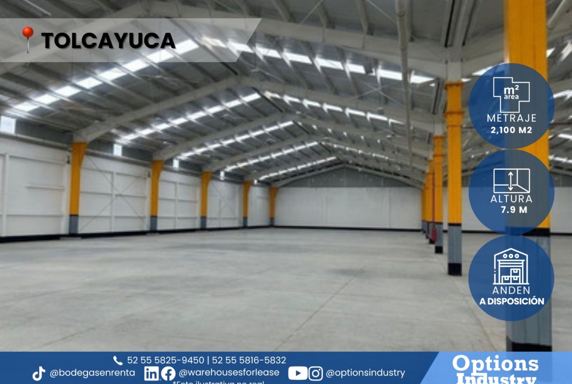 Bodega industrial en renta con excelente iluminación en Tolcayuca