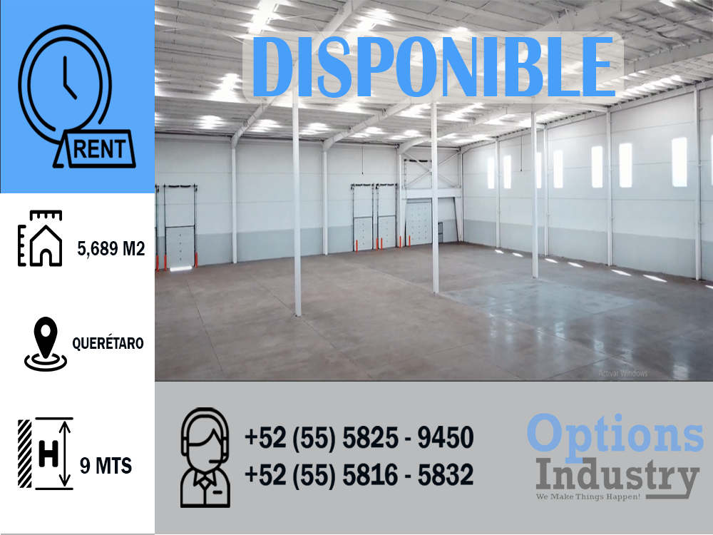 Espacio total disponible: 5,689 m2.