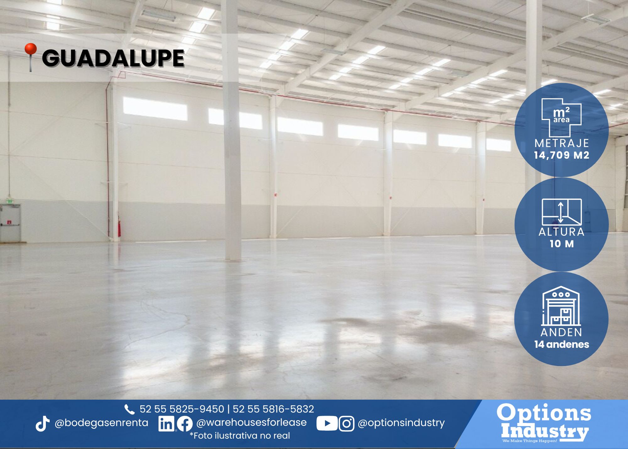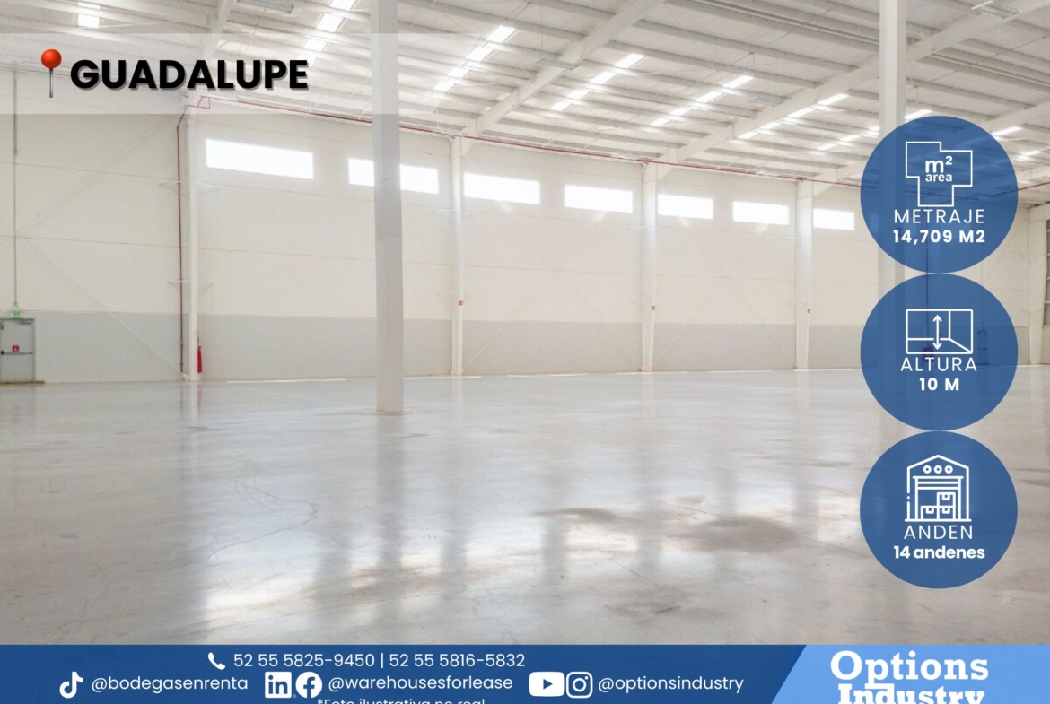 Industrial warehouse for rent with offices and parking in Guadalupe
