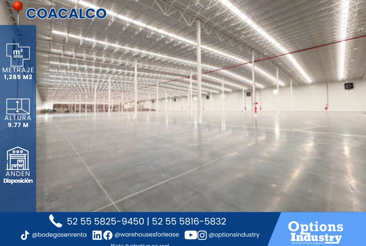 Oportunidad de renta de bodega con patio de maniobras en Coacalco