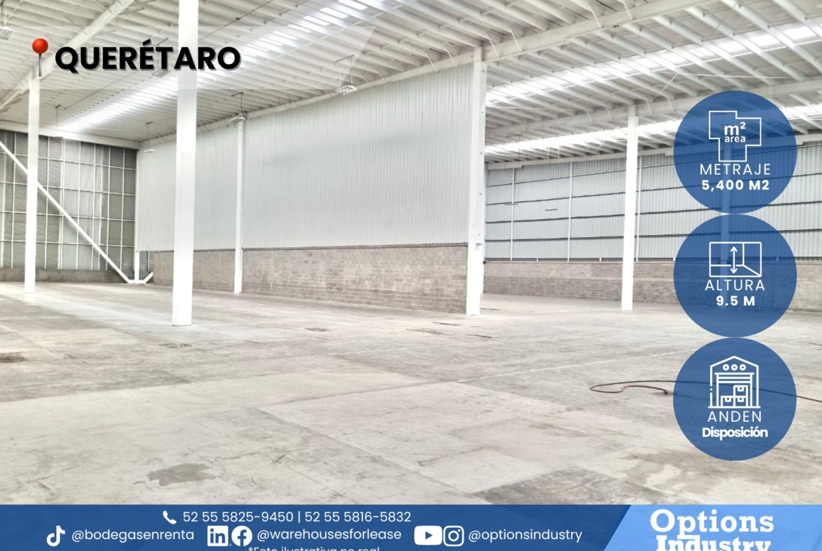 Opportunity to rent an industrial warehouse located in Querétaro