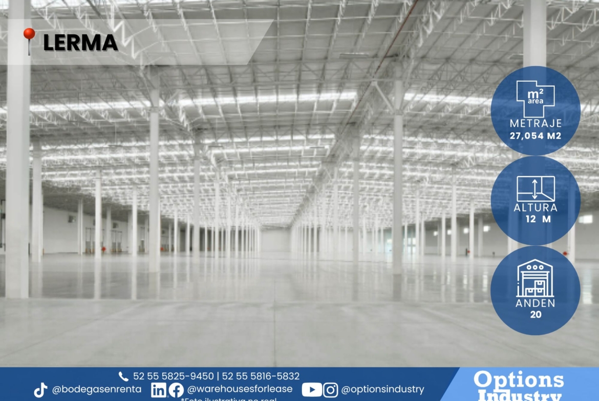 Warehouse for rent with ideal height for storage in Lerma
