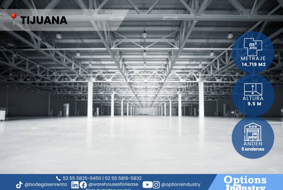 Warehouse for rent with ideal height for storage in Tijuana